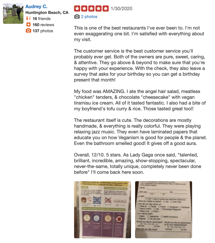 投稿日: 2020年1月30日2020年2月1日 投稿者: VegiLiciousday アンケートとレビューサイトにも! 初めて来てくださったお客様(ヴィーガンでもない)がこんな嬉しいことを沢山書いてくださいました!
